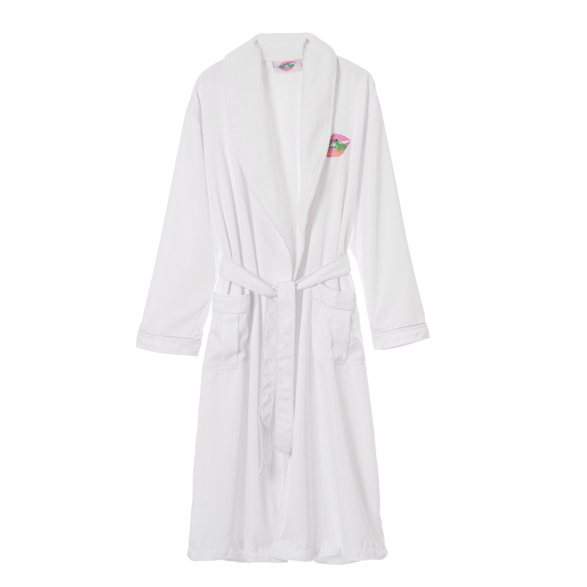 "Indulge in the playful luxury of 'Kissing Frogs'—our white microfiber exterior, terry cloth interior robe. This robe is more than just loungewear; it's a symbol of connection for couples, a statement in matching apparel. Embrace the 'his and hers' vibe with our irresistible robes, a perfect addition to your shared moments.