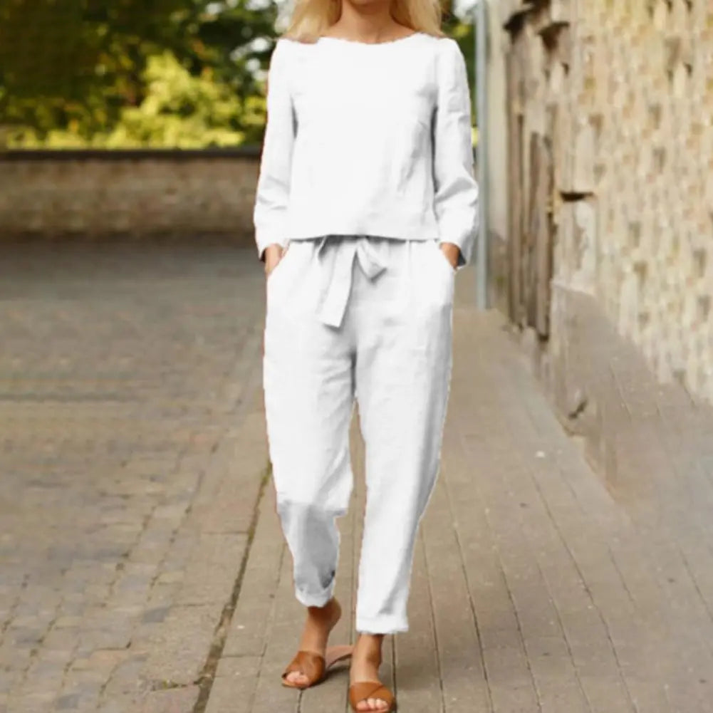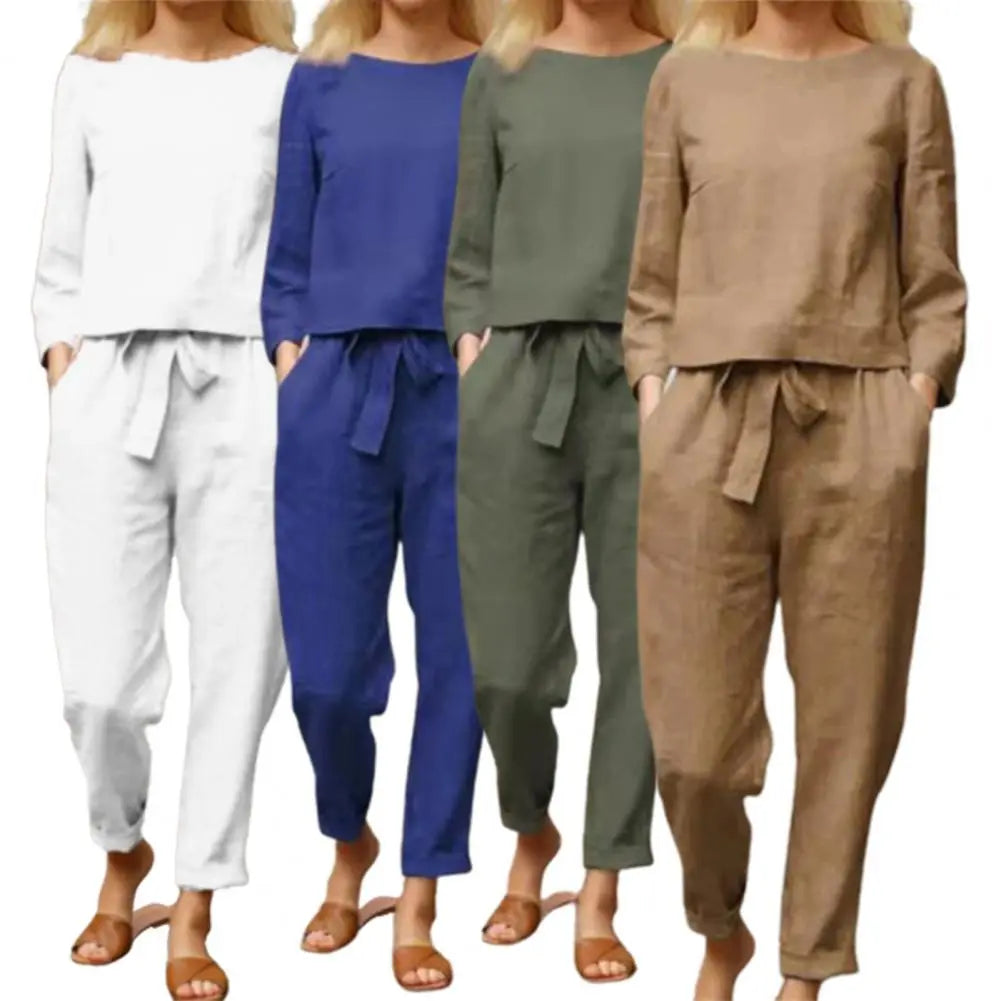 Introducing our Women's Casual Two-Piece Lounge Wear Set - a blend of comfort and style that suits every season and occasion. Made from a high-quality blend of cotton and linen, this ensemble offers a perfect balance of breathability and durability.