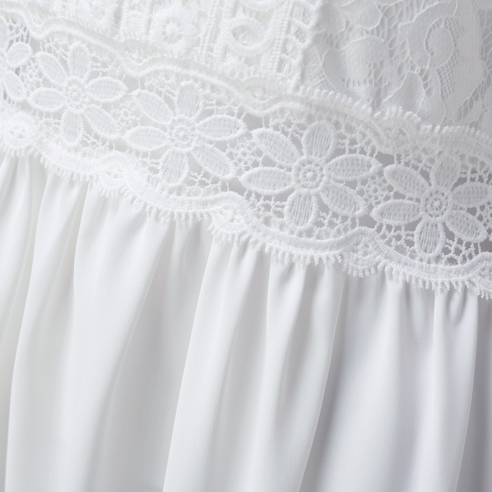 Elevate your summer style with this White Lace Dress, a blend of elegance and grace in one stunning ensemble. The delicate spaghetti straps and a charming V-neckline make this dress a timeless piece for any occasion.